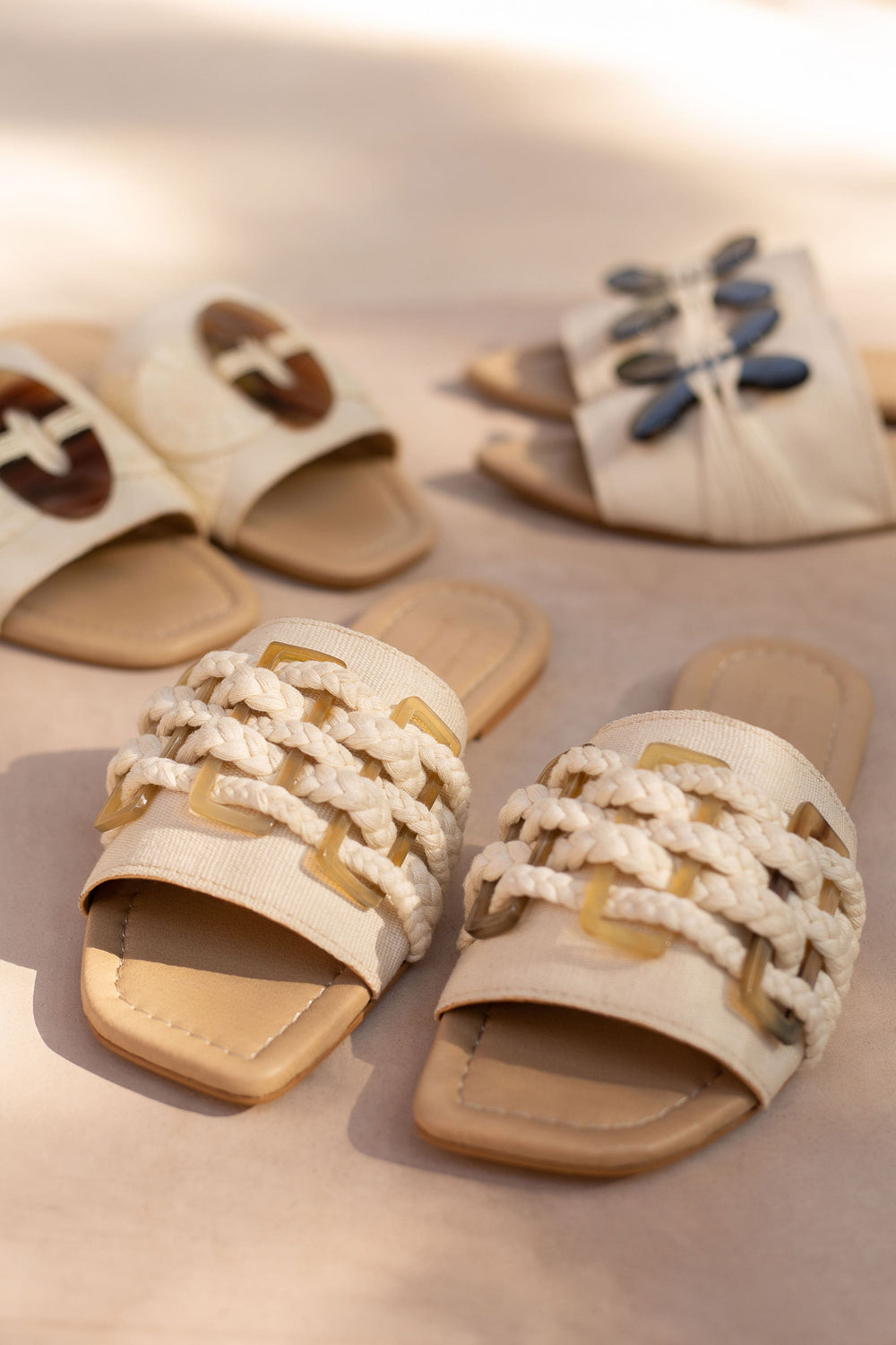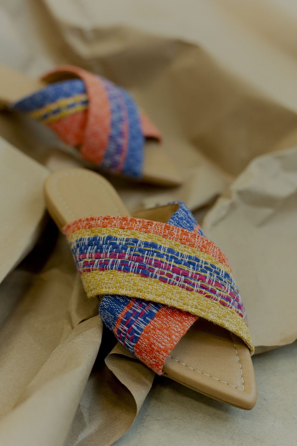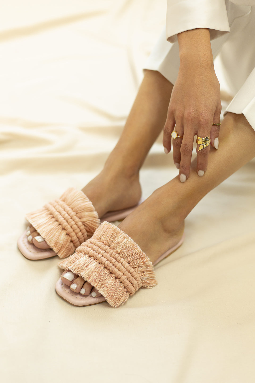 Elaboramos cada sandalia a mano en México, donde el diseño contemporáneo se entrelaza con el talento de mujeres artesanas que preservan saberes textiles ancestrales y de esta fusión nacen piezas únicas, cargadas de alma y significado.