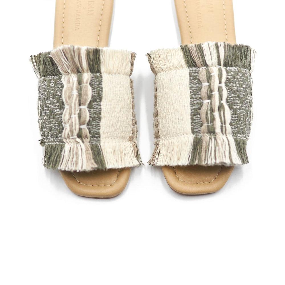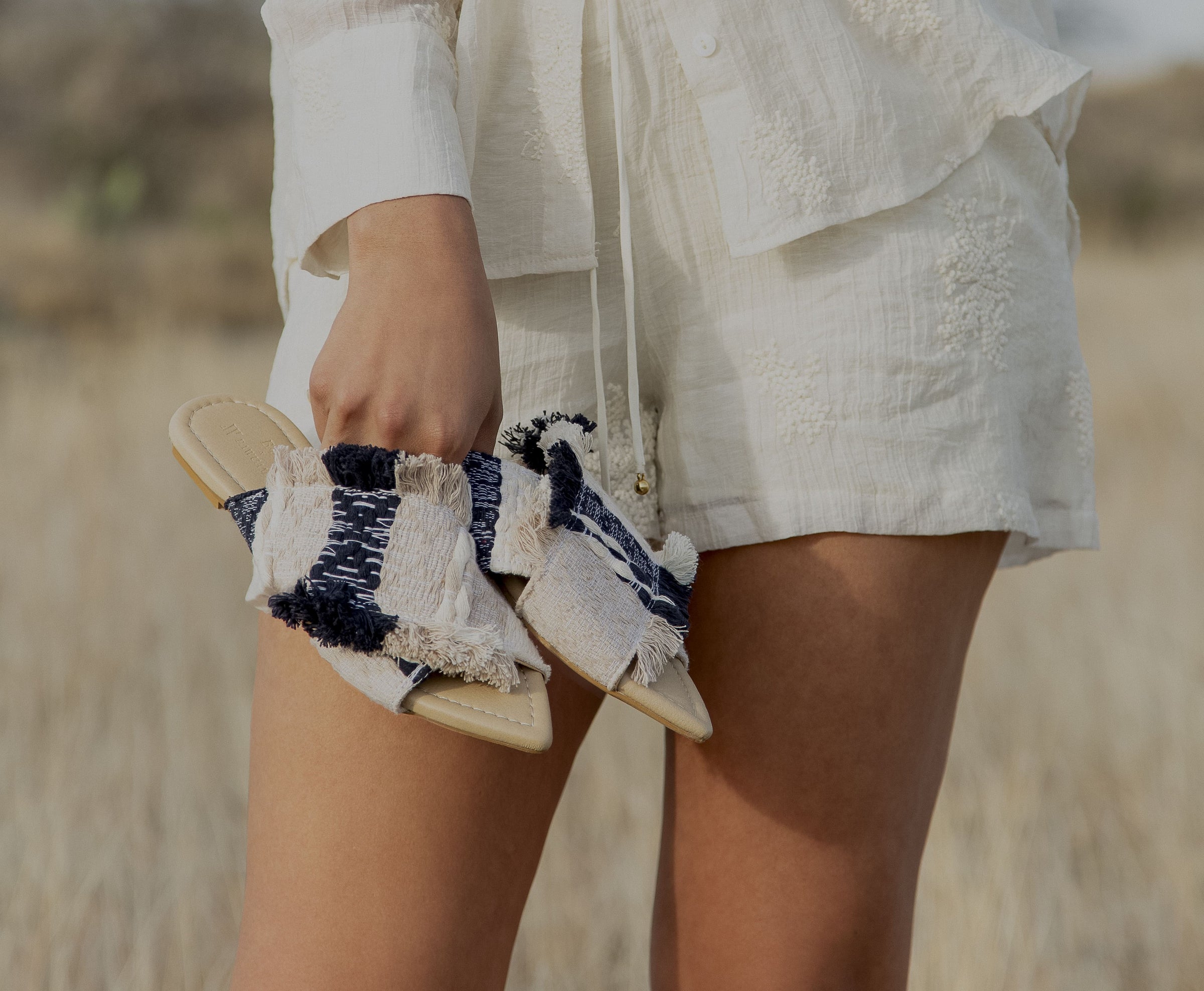 Cada sandalia de esta colaboración es de producción única, no encontrarás dos iguales ya que son creadas con retazos de Telar de Pedal creado por artesanos en el estado de Oaxaca, que son tomados de las producciones de bolsos e indumentaria Baní, dándoles una nueva vida sin perder la esencia y el legado que preservan sus bordados y telas.